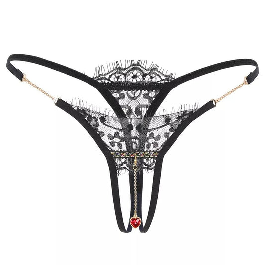 Tanga de encaje con forma de corazón: ropa interior sexy de cintura baja