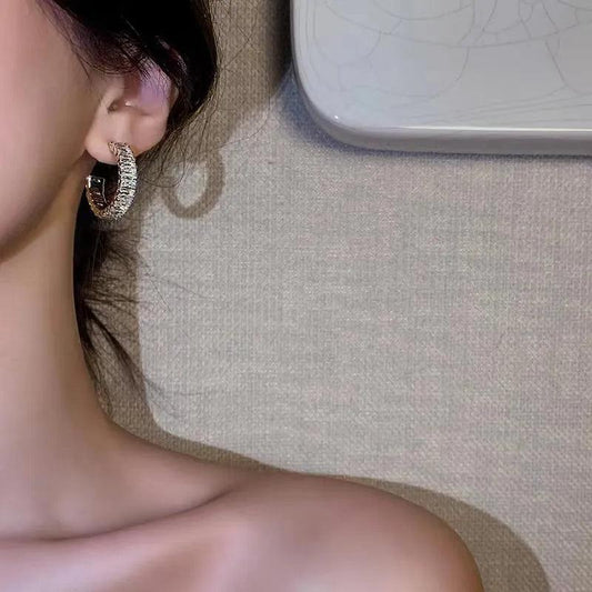 Retro Double Loop Zircon Earrings